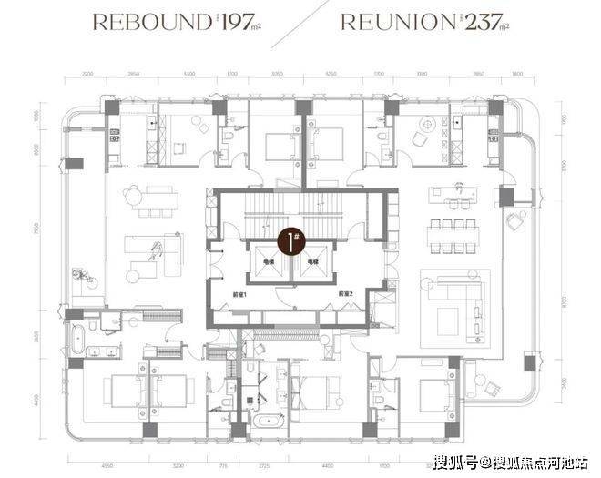 237㎡的4房2厅3卫,设计的是竖厅双龙抱珠格局,一梯一户,专梯入户设计,赠送私用电梯厅,客餐厅8.7米开间,LDKB一体化设计,分别做到了主卧35.3㎡/次卧套间15.93㎡/次卧16.51㎡/次卧12.34㎡(包含墙体飘窗),客厅连接餐厅出8.7米长的超大观景阳台约15.66平,另外东南向还有个观景阳台约10.08平,西厨位置有6.66平生活阳台,U型厨房另设西厨岛台,卫生间干湿分离,得房率约100%(包含赠送),东北朝向。