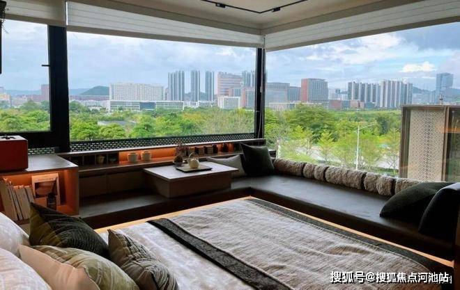 主卧套房采用的270°转角无柱飘窗,以超越常规的结构设计,为主人辟出一方可随需求自由定义的休憩角落,陪伴生活不断进阶。