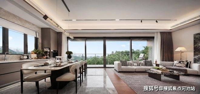南北四阳台设计,打造270°全景视野,将周边景观资源直接引入室内,创造“有限空间见无限景观”的效果。