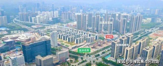 金洪名筑原为甲子塘社区土地整备利益统筹项目,宗地号为A608-0179,位于光明区凤凰街道光侨路与东长路交汇处东北侧。项目紧邻深铁瑞城,单从项目的航拍视角来看,大多人都会认为深铁二期的超高层,很少会有人知道这是一个独立的项目。