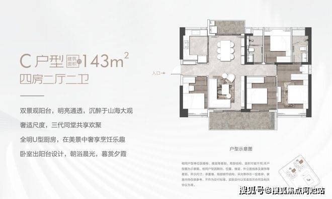 143㎡的奢阔户型,特别打造了双景观阳台,明亮通透,山海美景一览无余,每一个空间都是大尺度,能一步到位满足每个人生阶段的不同家庭格局需求,无论三代同堂还是多胎家庭,实现一步到位。