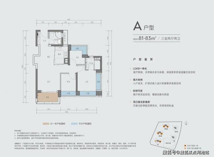 A户型 | 建面约81-83㎡三室两厅两卫