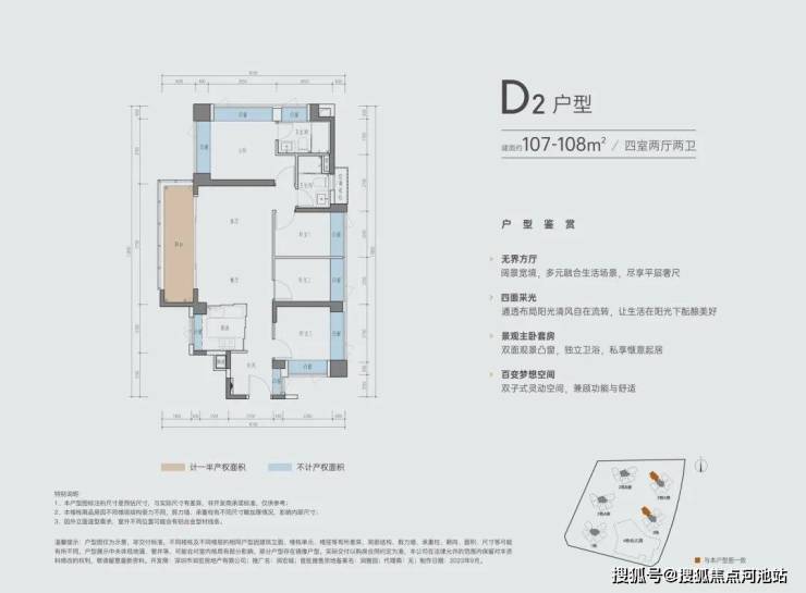 D-2户型 | 建面约107-108㎡四室两厅两卫