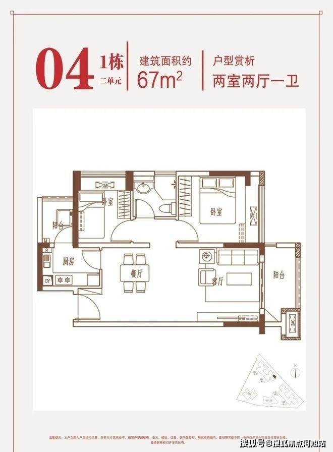 约67㎡两房:东南朝向,片区内唯一在售2房。