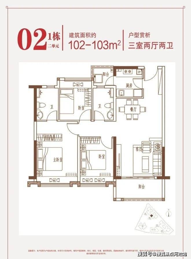 约95-97㎡三房:南向端头位,三面采光,花园瞰景。