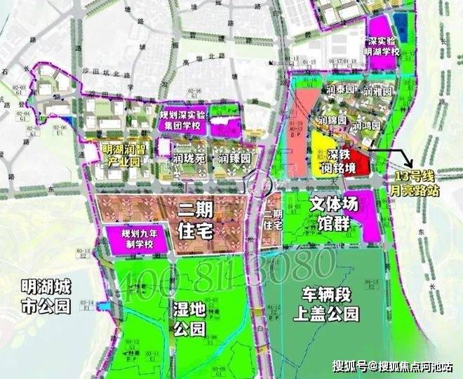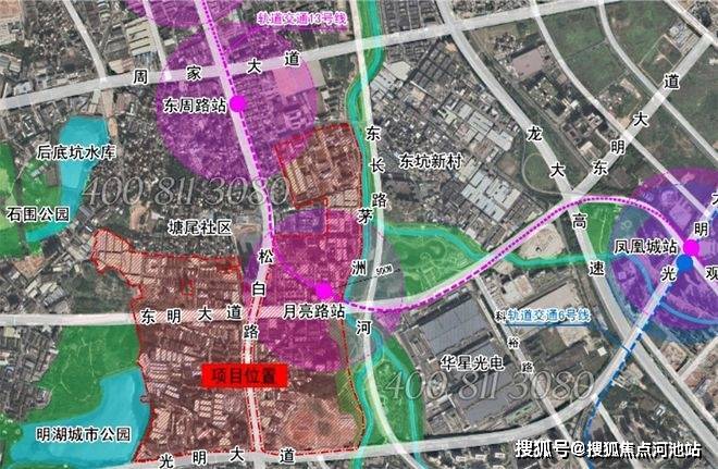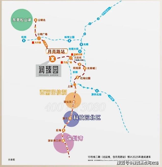 交通便捷:在建的地铁 13 号线月亮路站距项目约 600 米,是真正的地铁口物业。通车后 1 站可达凤凰城站换乘 6 号线,快速连接南山科技园、后海总部等核心区域,未来还将延伸至东莞松山湖,并接驳 29 号线(规划中),无论是日常通勤还是跨城出行都极为便利。同时,项目毗邻松白路、东明大道等城市主干道,自驾出行也能快速连接光明核心区与深圳各区。
