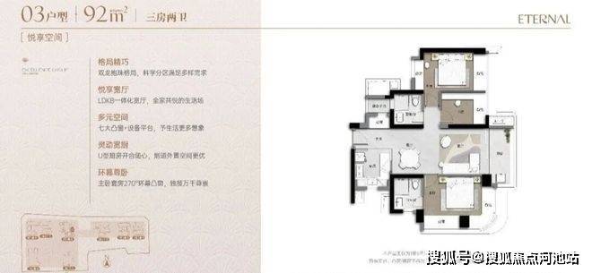小区户型涵盖92㎡、105㎡、123㎡、126㎡、173㎡多个面积段,从刚需到终极改善全覆盖。