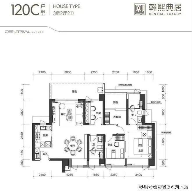建面约120㎡的3+1房2厅2卫,