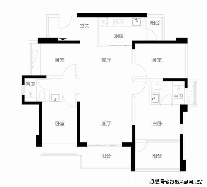 【115-118㎡4房2卫户型】双龙抱珠设计,主要生活空间 ,看中心园林景观舒适四房,三面采光,全明户型 单价区间:7.57-7.82万/㎡ 总价区间:878-920万