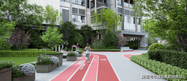 2大有氧跑道:园林中约180m元气跑道、运动场艺术跑道