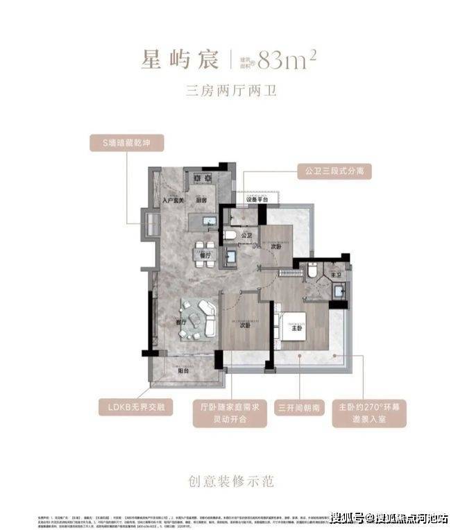 【颐安乐城三期】作为新规之后建设的楼盘,其户型设计颠覆了颐安集团以往的传统,采用全新的2.0+户型设计,得房率高达100%,83平做到了3房2卫,99平做到了4房2卫。所有单位均为3梯6户,确保每一户都是全南向户型,采光充足。