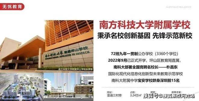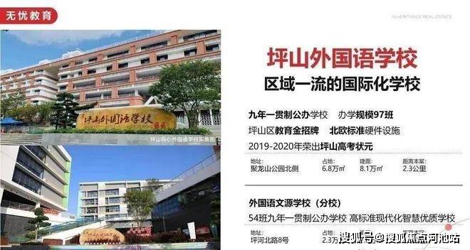 自带36班小学、18班幼儿园,周边还有坪山外国语学校、同心外国语学校、东部湾区实验学校、南方科技大学附属坪山学校、锦绣实验学校、深圳中学坪山创新学校等多所中小学。
