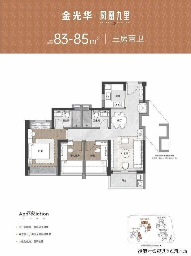 【建筑面积85㎡3房2卫】