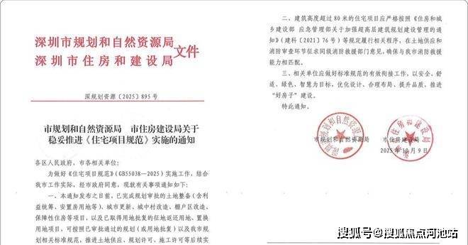 2025年10月9日,一份由深圳市规划和自然资源局、市住房和建设局联合发布关于稳妥推进《住宅项目规范》(GB55038-2025)实施的通知(以下简称《通知》),引发市场高度关注。《通知》明确,即日起报批建设的高度超80米住宅项目,应严格按照《住房和城乡建设部 应急管理部关于加强超高层建筑规划建设管理的通知》(建科〔2021〕76号)等规定履行相关程序,在土地供应和消防审查环节征求同级消防救援部门意见,确保与我市消防救援能力相匹配。