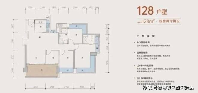 从具体的户型设计来看,居所几乎被飘窗+阳台环绕,据悉赠送率最高可达27%。