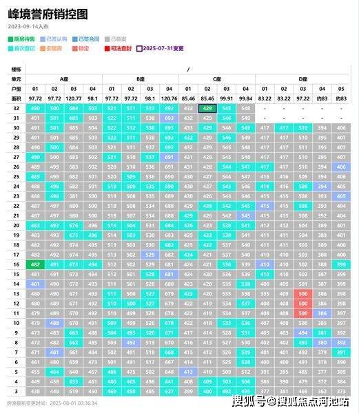 金地峰境誉府,金地集团开发的项目占地1.5万㎡,总建面7.93万㎡,计容5.4万㎡,容积率3.5,绿化率40%。包含4栋30-32层住宅楼,其中A/B/C座32层,D座30层。
