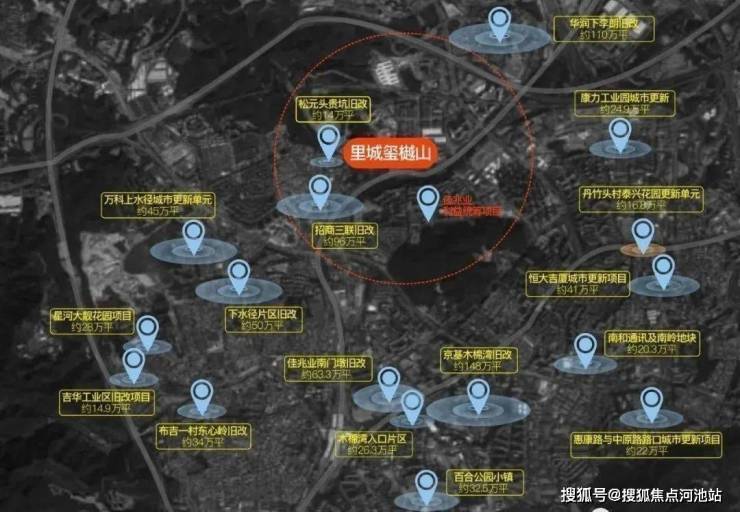 区域内里城、华润、华侨城、万科、招商等8大品牌开发商云集,超700万㎡旧改体量,里城玺樾山与约96万方招商三联旧改综合体项目一路之隔,西侧为约14万方奥园贵坑旧改项目,2KM内毗邻约110万方华润下李朗旧改项目,多个大型综合体环伺,左右皆繁华。