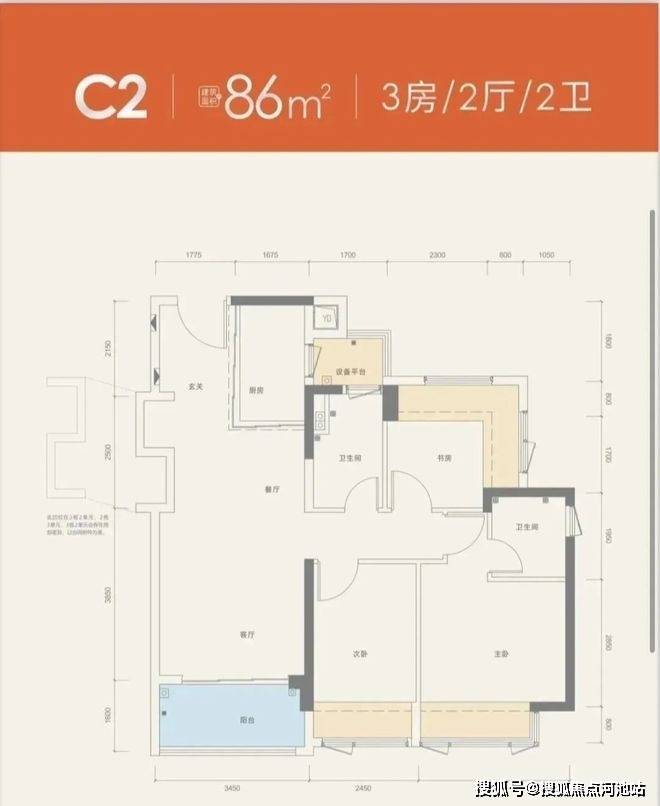 实得率高达约98%,尺寸能与新规前85-90平三房户型媲美。LDK一体化设计让客餐厨融为一体,约3.4米的开间让生活空间更显阔绰。所有卧室都额外赠送进深约0.8m的飘窗(远超市场0.6米标准),厨房外设有一个面积约2㎡的设备平台,这些赠送空间往往给生活带来意想不到的便利。