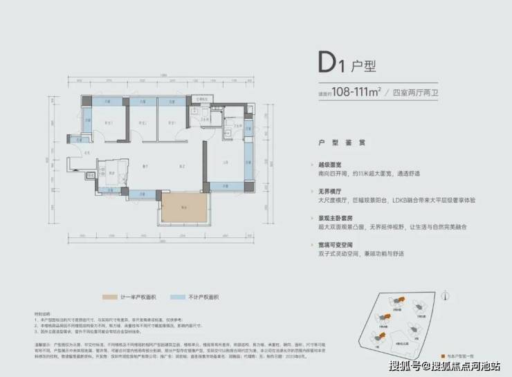 此外,从楼栋布局的角度来看,D2户型的遮挡面更少,