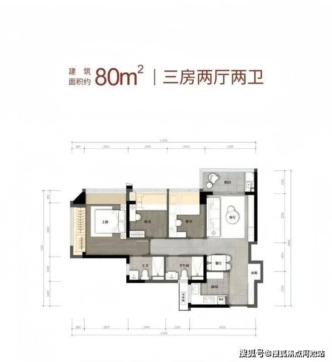 ✔️04户型80㎡三开间三房两卫