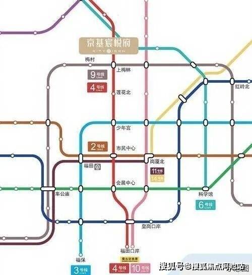 京基宸悦府位于福田CBD中轴之上、莲花山下,地处深圳福田上梅林,紧邻北 环大道,临近莲花山和福田CBD。周边交通网络发达,拥揽4/9号线双地铁口,距离4/9号线 (上梅林站)约300米,还紧邻10/22(在建中)号线,轻松抵达4/9号线上梅林站/梅村站, 无论是自驾出行还是乘坐公共交通,都能轻松畅达城市的各个角落,大大缩短了通勤时间, 让生活更加高效。