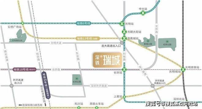 深铁瑞城位于光明区凤凰街道,光侨路以北、东长路以东、科裕路以西,与地铁6号线长圳站无缝接驳,属于地铁上盖物业。