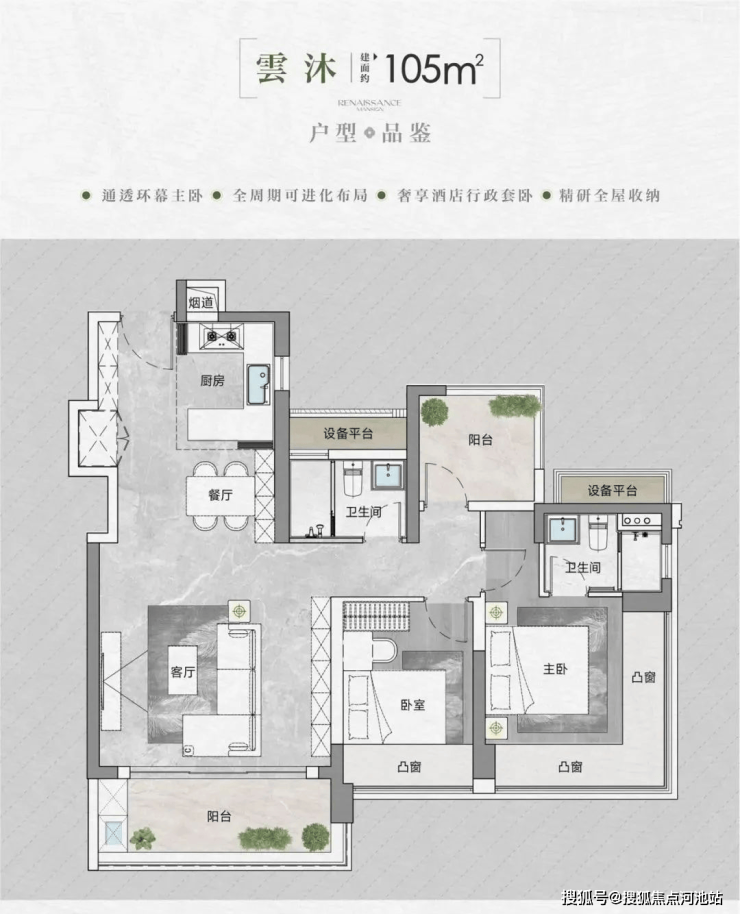 【建筑面积105㎡4房2卫】
