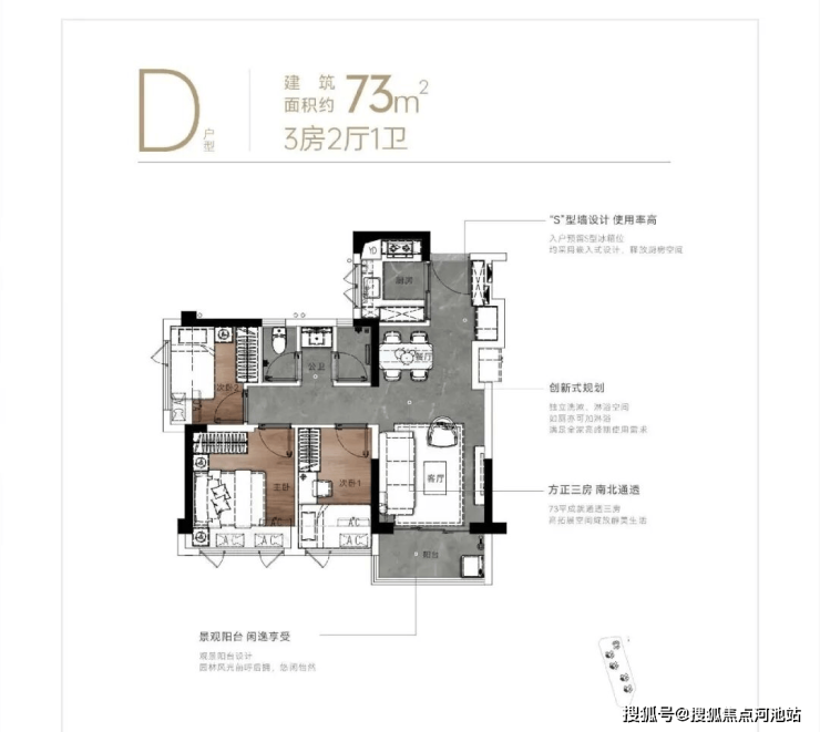 73㎡的3房2厅1.5卫,折后总价210万起,单价约2.87万/㎡。
