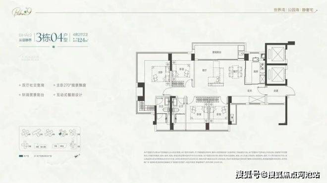 105-122㎡四房:主流改善,2梯4户,西南看海